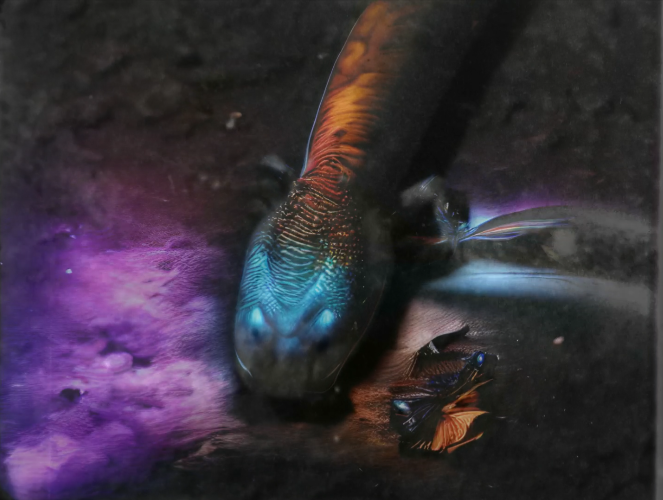 SPECIES PIRACY is an ongoing ensemble live cinema project inspired by the dark arts of de-extinction which premiered on 14th December 2023 at IKLECTIK, London. Supported by the Leverhulme Centre of Anthropocene Biodiversity (LCAB), it draws on histories of moving image projection as a form of both life and afterlife, from biological experimentation to dream palaces, seances, phantasmagoria and other cinematic manifestations. A new pioneering machine learning process was used to translate these histories into an exploration of the contemporary rhetoric, aesthetics, and strategies of de-extinction science, which is currently in an analogous stage of experimentation.